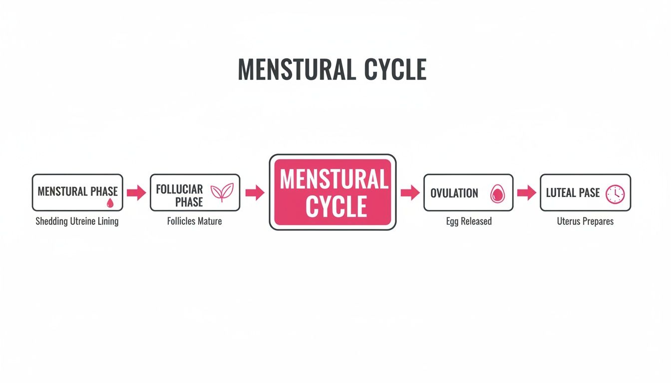 To really get what a short luteal phase means, you need to see the bigger picture of her entire menstrual cycle. It’s so much more than just "that time of the month." Her cycle is a month long journey with four distinct stages, each one driven by a unique cocktail of hormones. Once you understand the playbook, you can anticipate what's coming next and why she might be feeling the way she does. It’s like knowing the game plan before kickoff.